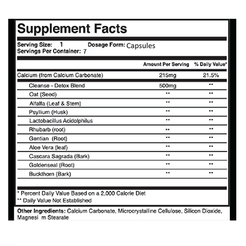 Ingredients For Cleanse (7 Day Supply - 7 Capsules)
